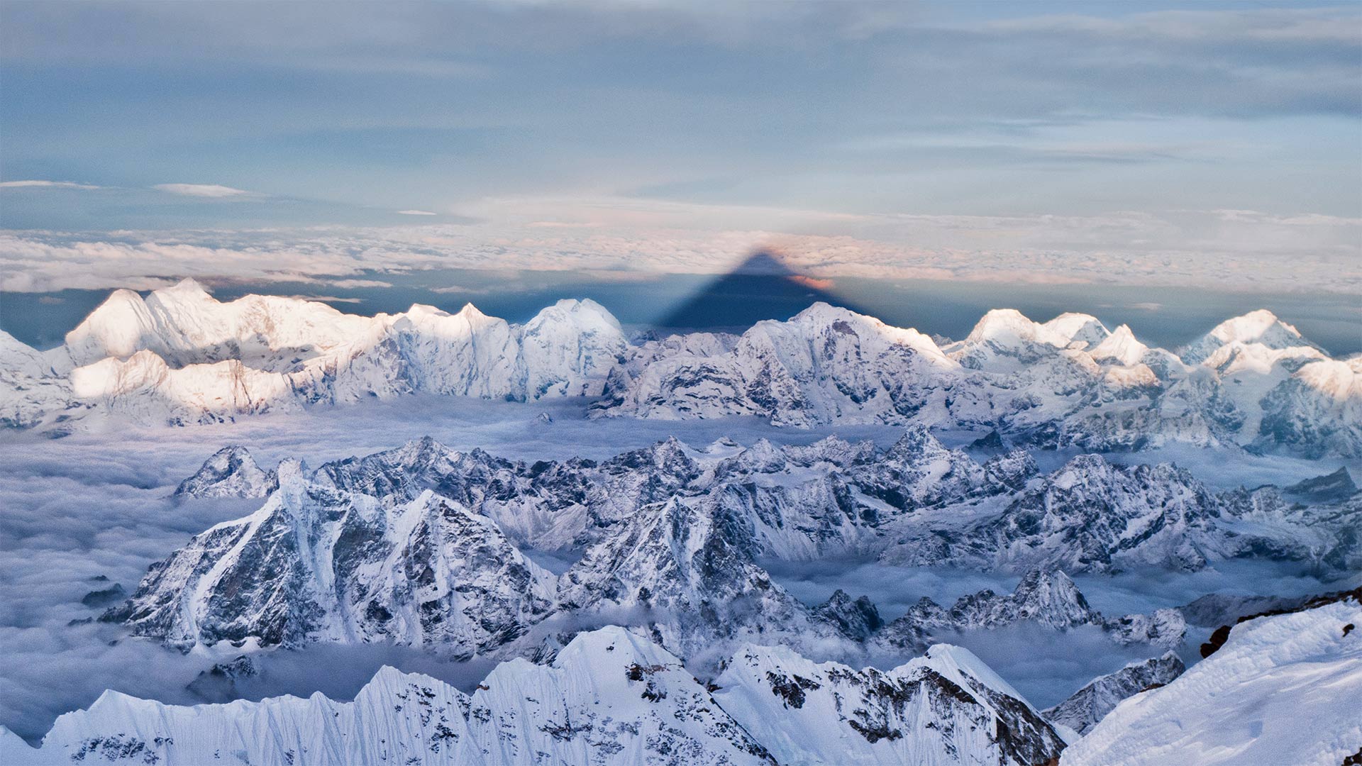 The shadow of Mount Everest over the western Himalayas in Nepal (© Kent Karvey/KH Films